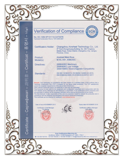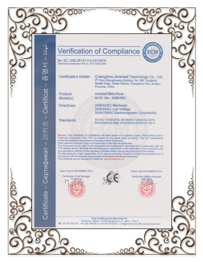 I prodotti Airwheel sono pensati e realizzati secondo i più alti standard internazionali,come viene riportato dalle numerose certificazioni ottenute dagli enti di controllo di tutto il mondo.