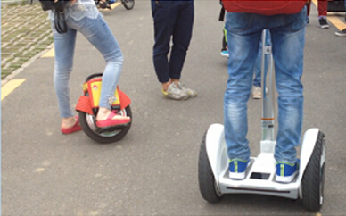 On my first ever visit to China, I saw a bunch of people riding these strange devices (the red one on the left in the picture below) that I had never seen before. Like a Segway, except with only one wheel and no awkward handle. They are like unicycles, except self-balancing using an electric motor.